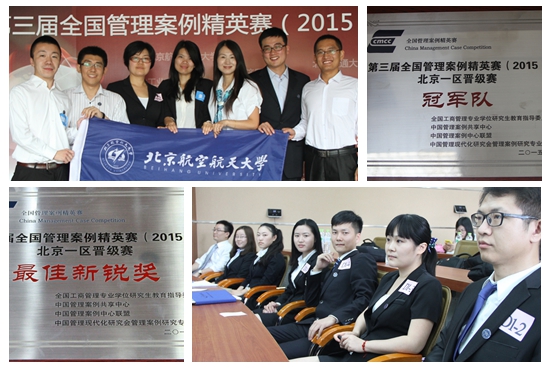 比赛过程中,北航两队学子分析案例的着眼点各有侧重,提出了各具特色的解决方案。在展示环节,赛场气氛堪比辩论赛,紧张激烈,对抗聚焦,精彩迭起。各队既要在场上对垒、回答对方的尖锐提问,也要面对场下参赛队伍的挑战,还要应对来自评委的犀利点评。通过对案例的透彻分析和深刻理解,学以致用地深入剖析和酣畅淋漓地独到阐述,使得赛事精彩纷呈,绚烂夺目。最终,由北航2014级MBA员工何超、黄琼、李哲贤、董丽娟、刘峥、张霞、张鹰飞组成的“金鹰”队力拔头筹取得冠军,并将于九月份代表北航征战全国管理案例精英赛总决赛。由北航2014级MBA员工王国栋、杨龙、陈昊月、林珠平、罗缜、刘潇潇、谢晓娇组成的“国士无双”队获得第5名的好成绩,荣获最佳新锐奖。