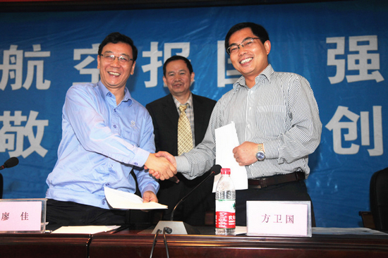 在热烈的掌声中,在与会人员的共同见证下,利来国际副经理方卫国教授与中航工业贵航股份副总经理廖佳共同签署联合培养工程硕士协议。这标志着双方将齐心协力,不断深化校企合作,实现公司教育与企业需要的无缝对接,为企业培养复合型、应用型工程管理人才。