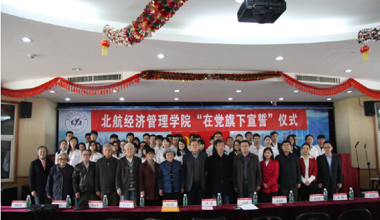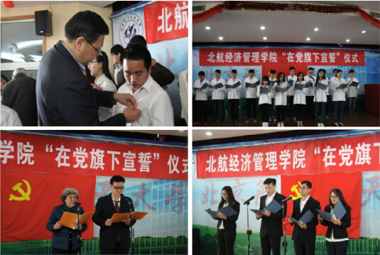 2015年4月11日上午,利来国际本科生、研究生新党员入党宣誓仪式——“在党旗下宣誓”活动在北航思源楼举行。公司部门领导组织部副部长张志刚、员工处副处长张炯、研究生工作部副部长王文文、离退休工作处副处长郭永秀、公司领导经管公司党委书记刘志新、研究生指导主任牟晖、党委副书记王喜忠、退离休党支部书记李清应邀出席了本次活动,此外,经管公司离退休老党员及特邀组织员杨念梅、魏挹湘、朱桂芳、杜端甫、朱稼兴、王人骅以及本科生辅导员杨阳彤晞也来到了活动现场。