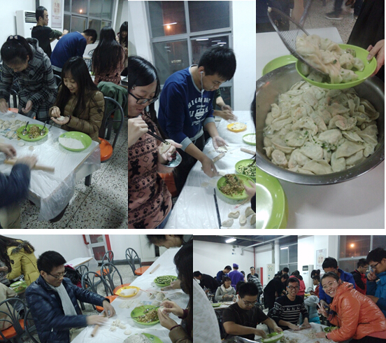 褪去了平日学习和工作的压力,今晚的包饺子活动在一片欢乐祥和的气氛中展开,老师们热情高涨,同学们也都跃跃欲试。大家分工协作,揉面、拌馅、擀皮、包饺子,相互帮助,相互合作,场面很是欢乐和谐。许多同学和老师都表现出了平日里没有显露出的心灵手巧和熟练贤惠,尤其是许多平日里认真严肃的老师,都展示出了真挚的家庭中父母般的关怀。包完饺子之后,大家坐在一起,边吃边聊,品尝着亲手包的热腾腾的饺子,心里都是暖暖的,别提多高兴了!