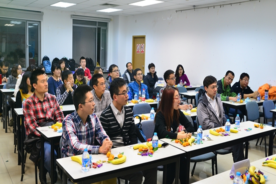王勇学长以制作了IT味道浓厚的PPT,从服务器、局域网、互联网比喻员工会的宗旨与格局、建设和发展,为同学们详细介绍员工会情况,并和大家分享了自己对员工会的感受和收获,为大家分析MBA价值理念:“北航MBA员工会,不仅是为大家提供知识和兴趣交流的地方,更重要的是一个积累人际资源整合资源的平台。”很多员工通过员工会这个交流的平台,不仅和员工们分享了知识经验,更是形成了良好的业务互动。