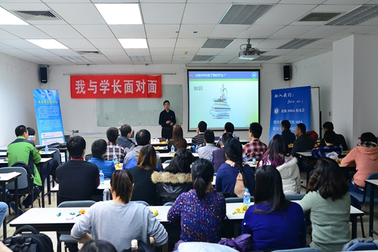 2014年11月29日,北航MBA员工会“我与学长面对面”系列宣讲活动第三场,走进MB14082在北航新主楼A928教室圆满举办!至此本年度走进班级宣讲活动完美收官!