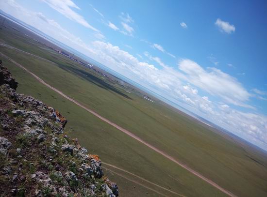 边际--草原、湖、蓝天交接到一处,构成了一条天际线