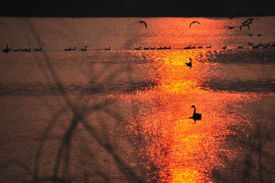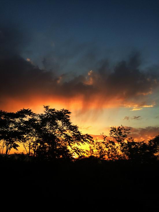 丛植剪影--夕阳余晖衬托下的树丛宛如中国传统艺术中的剪影;散射透入云层的光束将云朵烘托的分外立体。天空、云朵、夕阳、树丛相映成趣
