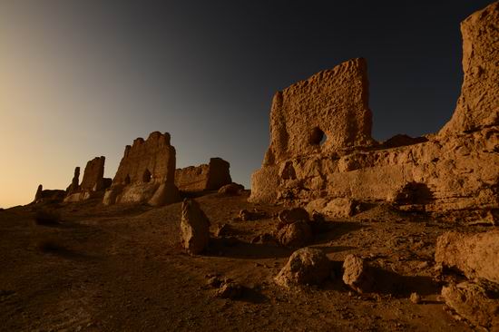 晚霞下的远古--历史的沉淀不疾不徐陈列在眼前,远古的记忆被大漠的阳光与风沙缠缠绕绕,雕刻出这残垣断壁的坚毅,留给我们涤荡徘徊的震撼