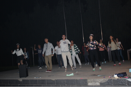 20日晚全体研究生自导自演了篝火迎新晚会,晚会结束后,同学们手拉手围绕篝火载歌载舞,徜徉在一片欢乐的海洋中。