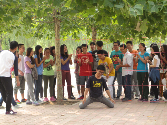 9月20日早上8点,利来国际2014级研究生新生前往北京航天科普教育基地参加为期两天的素质拓展活动。经管公司金融系主任、专业硕士中心主任赵尚梅老师,研究生指导主任牟晖老师及各年级辅导员出席此次活动。期间,同学们以小组为单位,顺利完成了激情节拍、雷区取水、背摔、高空断桥等十多个项目。在高空断桥项目中,每名队员要爬上8米高的高空跨越“断桥”。大部分同学表示,此次活动不仅大大提升的自己不畏艰难的勇气,更肯定了团队精神的重要性和团队合作产生的超出想像的巨大力量,短短两天时间,大家已相互建立了深厚的友谊。