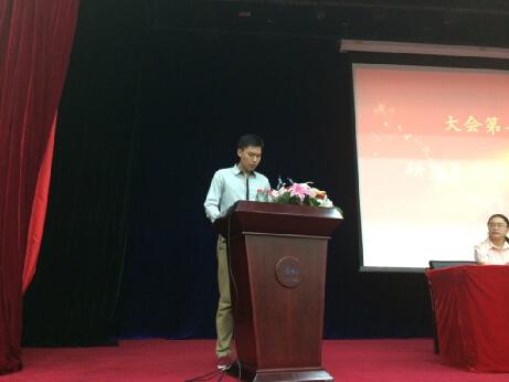 随后,2014级研究生新生代表侯银丰同学发言,表达了自己对读研生活的美好憧憬,并表明了自己秉承校训,勤奋学习的决心与信心。