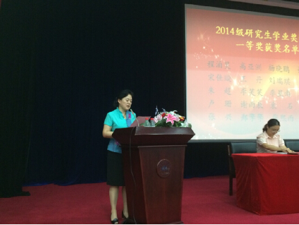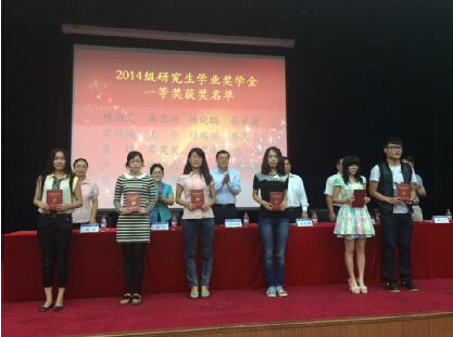 之后,副经理周宁教授宣读了2014级研究生员工奖学金一等获奖名单,对所有获得一等奖学金的同学表示祝贺,并鼓励全体新生努力学习,勤于研究。随后主席台领导和嘉宾向获奖者颁发了荣誉证书。