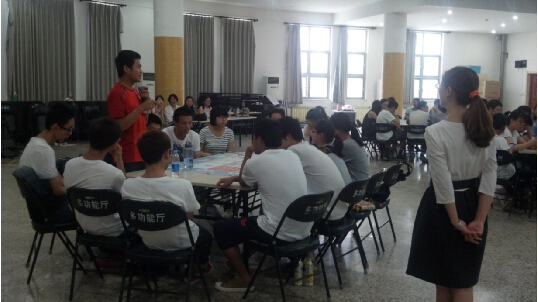 2014年7月3日和4日经管公司实验中心邀请用友公司在沙河新校区多功能厅为大一员工开展先天特质沙盘课程体验。