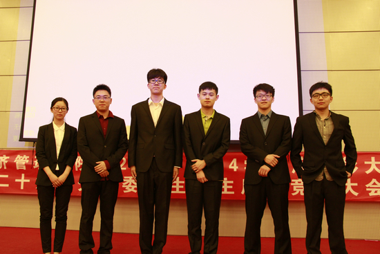 首先,大会在共青团团歌下正式开始。第二十五届分团委员工会主席孟楷越就自己的员工会工作心得进行了讲话。然后,分团委副书记杨阳彤晞进行了大会候选人资格审查报告。接下来,6位副主席候选人进行了精彩的竞选演讲及现场答辩。同学们对此投出了宝贵的选票。在各部门代表统计票数的同时,出席嘉宾们对分团委员工会杰出贡献工作者、分团委员工会优秀学员工干部、员工会优秀干事进行了隆重的颁奖仪式。这是对员工会努力工作者的肯定及鼓励。继此,由传媒部出品的员工会宣传视频于大荧幕上放映,同学们都沉浸在视觉与听觉的享受中,感受着员工会的点点滴滴。视频播放完之后,分团委副书记杨阳彤晞公布了剧本征集大赛获奖名单,并为获奖者们颁发奖品。