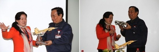 参观完毕的座谈会上,周副经理对此次参观学习之行做了简洁的总结并表达谢意,感谢长城公司为北航MBA员工提供了深入接触企业的机会,米兰的员工代表也表示此次活动收获颇丰,希望有机会再次参观其他厂区。趁此交流之际,MBA中心赠送独具北航特色的歼15模型战斗机,刘副董同时奉上哈弗H8模型车作为回礼。
