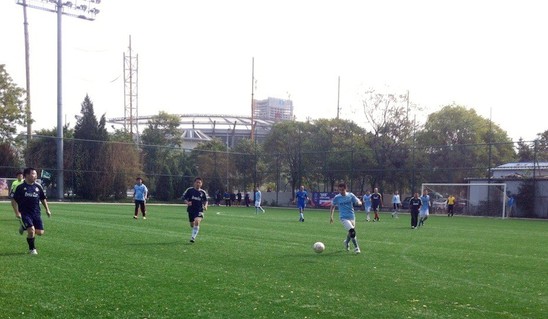 在半决赛中,面对人大这样的老牌强队,大家毫无惧色,敢打敢拼,在对手先入一球的情况下,北航的队员们不断地给对手施加压力,进攻,射门,不断的冲击禁区。终于在下半场由强力边卫,绰号“喷气机”的冯波同学打进扳平的一球。但人大毕竟是一支劲旅,在终场前凭借前锋的灵光一现,禁区外射门将比分反超。此时,北航MBA的队员们没有放弃,在体力的极限仍奋力拼杀,无奈临近终场,以1:2的比分与决赛失之交臂。