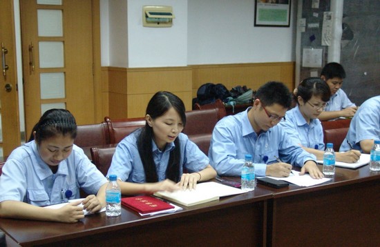 会上,中航工业洪都副总工程师黄莉玲代表中航工业洪都公司对周宁副经理、邹艳教授的到来表示热烈欢迎,感谢北航经管公司领导百忙之中抽出时间专程看望同学们。周宁副经理、邹艳教授为2011级“优秀员工奖学金”荣誉获得者——GS1108609汪海、GS1108610宗进、GS1108616李莉和GS1108632毛春晓同学颁发奖学金。在互动讨论环节,同学们积极发言,畅谈了参加工程硕士研究生学习的体会。在发言中,同学们对北航经管公司的研究生教育给予了充分肯定,对授课老师的辛勤工作给予了高度评价。周宁副经理认真听取每位同学的发言,详细询问同学们的学习感受和在前一阶段的学习情况,并仔细记录下同学们的意见和建议。同时,周宁副经理充分肯定了同学们取得的成绩,并勉励大家认真学习,严格要求自己,真正把理论与实际工作相结合,工作与学习相结合,不断提升自身综合素养,为洪都公司又好又快发展做出更大贡献。