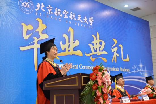 在热烈的掌声中,经管公司经理王惠文教授深情致辞,她代表公司师生向圆满完成学业的毕业生表示最热烈的祝贺,向所有为毕业生成才辛勤付出的亲人、师长和朋友致以崇高的敬意和衷心的感谢。2013届硕士研究生在校两年来,刻苦努力、孜孜求索,在学业上取得了长足进步。在校期间,携手欢度公司55周年校庆,共同筹办公司甲子庆典,一同见证了公司和公司的飞速发展。王经理对即将告别母校的学子提出殷切的希望:一是要进一步强化自己的学习能力和思维能力,开阔眼界、打开心界、提高境界,这样才能在复杂多变的环境中高瞻远瞩永远立于不败之地;二是要坚持北航学子踏实勤奋的工作作风和求真务实的工作态度,有意识锻炼执行能力、组织能力、团队协作能力以及影响力和领导力,扎实前进追求卓越;三是真正做到爱岗敬业、忠于职守,做一个能够真心奉献的人、忠诚组织的人、有社会责任感的人、以及有人文关怀的人;最后王经理代表全院老师真诚期待毕业生同学无论身在何方,都能情系母校,关心和支持公司的建设与发展,常回家看看。