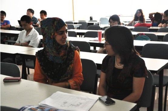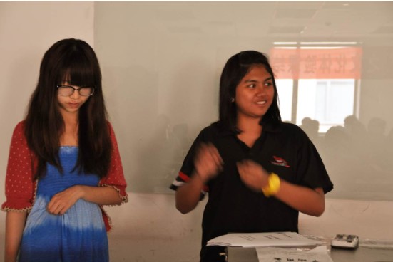 6月21日上午9点,由利来国际与国际公司共同推进的本土校园国际化之文化体验课结课答辩于新主楼A949教室拉开帷幕,由国际公司的职工与利来国际2010级本科中国员工共同组成的六个文化体验小组以两学期以来的小组活动为主题进行了精彩的展示与答辩,为这门课程画上了圆满的句号。国际公司副经理赵海云老师,经济管理公司党委副书记高翔老师、课程负责老师、分团委书记宋晓东老师也参加了此次答辩并担任评委。