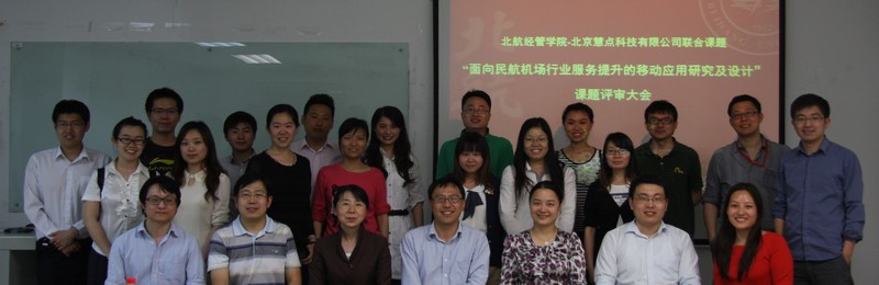 2013年5月7日下午6:30,北航经管公司与北京慧点科技有限责任公司共同开展的“面向民航机场行业服务提升的移动应用研究及设计”课题答辩大会在新主楼A928拉开了帷幕。出席评审会的嘉宾有:慧点科技的副总裁韩国权先生;经管公司研究生指导主任、职业发展中心主任牟晖老师;北航经管公司副教授,刘天亮老师;慧点科技商业价值研究院总监,马东红女士;慧点科技商业价值研究院高级咨询顾问,孙海洋先生;慧点科技移动应用事业部项目总监,赵明先生;慧点科技移动应用事业部产品总监,毛颖辉先生;并由慧点科技为交通行业营销中心咨询顾问李建安先生与北航经管公司职业发展中心梁娜老师担任评分员;答辩会由职业发展中心梁娜老师主持。