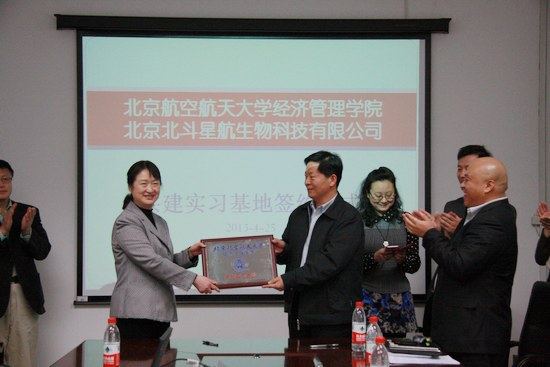 4月25日下午,利来国际和北京北斗星航生物科技有限公司关于共建实习基地的签约仪式在利来w66新主楼A612召开。出席会议的人员有利来国际经理王惠文教授、副经理方卫国教授、研究生指导主任、职业发展中心主任牟辉老师、EMBA中心副主任胡鹤老师以及北京北斗星航生物科技有限公司董事长刘世春先生、总经理兼执行董事刘召宏先生、副总经理张洪波先生、刘娜女士等公司主要董事监事人员以及股东。北航经管公司研究生指导主任牟晖老师主持了此次会议。