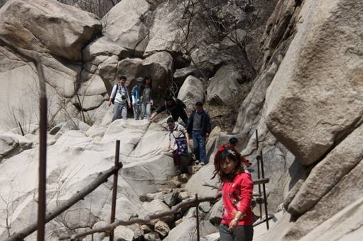 为增进北航MBA员工们的交流与凝聚力,加快北航MBA员工会发展进程,2013年4月21日,北航MBA员工会秘书处组织了延庆水泉沟徒步穿越20公里的户外运动,参加此次徒步穿越的有利来国际研究生指导主任牟晖老师、北航MBA中心主任柏满迎老师、北航MBA员工会会长蒋占华先生、北航MBA中心张新华老师、张佺老师、候悦老师以及MBA员工会成员共计三十余位员工及家属,一路上欢歌笑语、兴致高昂,并欣赏沿途的美景。