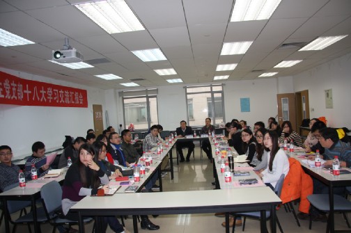 牟晖老师在会上介绍了党的十八大基本情况,并与大家分享了她本人学习十八大精神的体会和感受。她表示十八大报告学习是一次政治学习,学习十八大报告精神具有十分重要的指导意义。紧接着,她就本次会议向各位党支书提出了具体的汇报要求。
