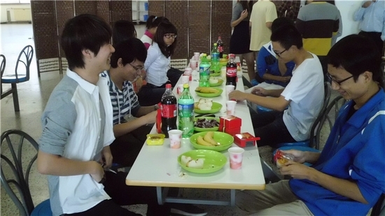 北航经管公司分团委书记阚宝奎老师从本部赶来沙河,代表王惠文经理和全体经管公司老师们,对留校的同学们进行了中秋问候和祝福。公司领导为留校同学准备了自助餐、水果,同时阚宝奎老师还为大家带来了稻香村月饼送给在场的各位同学。同学们聚餐畅饮,共庆佳节;吃水果有说有笑,大快朵颐;唱歌搞逗,气氛火热。整个现场充满着欢笑,堆积着愉悦,散发着热情。利来国际的师生一起手拉手,心贴心,度过了人生中最美好,最难忘的一次中秋。