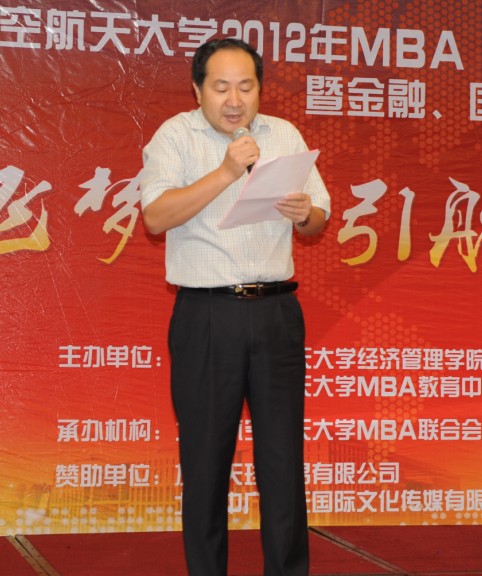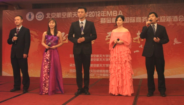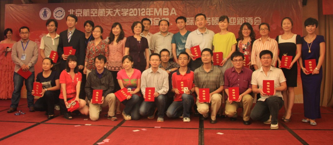 北航经管公司经理王惠文教授、国际公司经理周泓教授;北航经管公司副经理周宁教授、副经理方卫国教授;北航MBA教育中心主任柏满迎教授、副主任秦中峰副教授;管理科学与工程系系主任邓修权副教授、杨玲副教授、王立文副教授;金融系主任赵尚梅教授;赵秋红教授、高志红副教授、谢晓霞博士;员工工作办公室主任衣萌老师、MBA中心老师;北航MBA员工会会长蒋占华先生、中航咨询禹国印先生等员工代表;MBA兄弟院校代表、多家媒体嘉宾及北航2012级MBA、金融、国际商务硕士新生欢聚一堂,共同庆祝新成员加入北航这个最具团队精神的MBA大家庭。此次酒会,获得了由北航SMBA员工联合创办的“友缘天珍”投资管理有限公司和北京中广九天国际文化传媒有限公司的赞助。