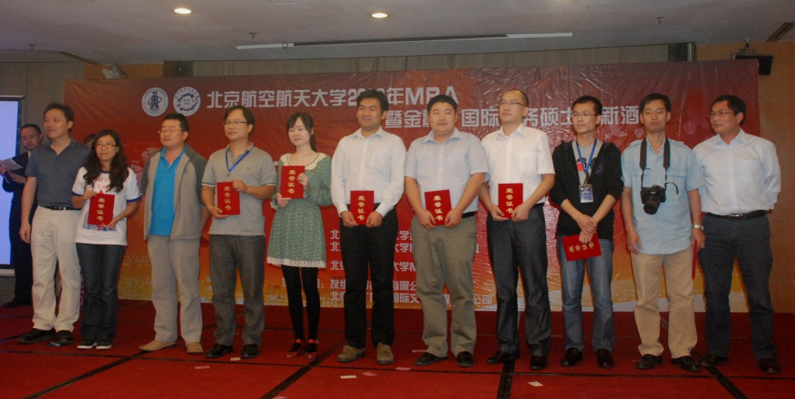 酒会现场,2012年度北航MBA优秀志愿者表彰仪式、2012级北航MBA新生奖学金颁奖仪式同期举行。经MBA联合会提名,MBA中心审核后,共32名同学荣获2012年度北航MBA“优秀志愿者”;经过经管公司考评,共有29名优秀MBA新生脱颖而出,获得了北航2012MBA新生奖学金。