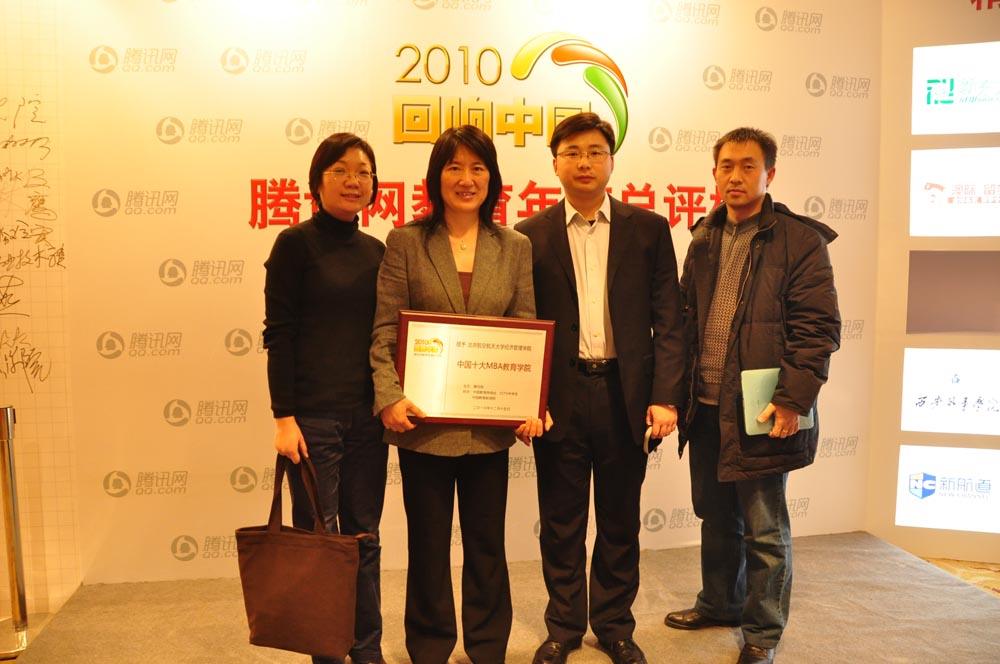 北航MBA教育中心主任苏文平老师代表利来国际领奖,并接受了腾讯网专访,介绍了北航MBA的主要办学特色及近年来的招生、宣传工作。MBA中心招生主管张新华老师、北航第11届MBA联合会主席许媛丽、学术部部长赵骥同学也参加本次大会。