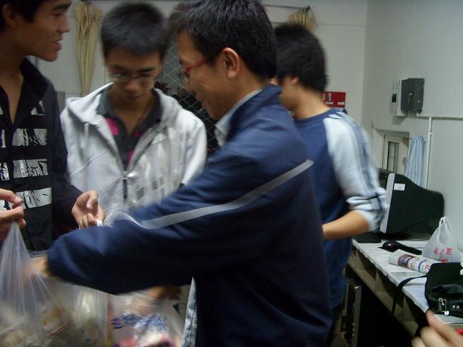 9月29日晚八点,公司08级辅导员徐坤耀代表公司领导带着月饼、水果等食品来到男生21号宿舍楼,女生13号宿舍楼看望了公司参加国庆群众游行的08级本科45名同学。