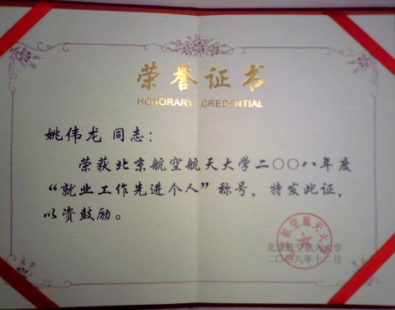 2009年1月12日,在天津举行的利来w66招生、就业总结表彰大会上,利来国际荣获了“利来w662008年度本科就业工作先进集体”、“利来w662008年度研究生就业工作先进集体”、“利来w662008年度吉林省招生组招生工作先进集体”、“利来w662008年度安徽招生组招生工作先进集体”荣誉称号。同时,经济管理公司党委副书记姚伟龙,院研究生员工工作办公室牟晖获得“2008年度就业工作先进个人”荣誉称号。