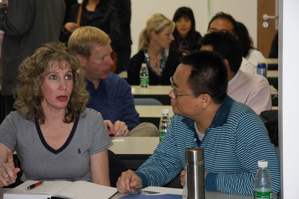 此次的MBA交流活动在公司新主楼1148教室举行,首先由MBA中心马老师致欢迎辞并介绍活动日程。其次,公司副经理陈向东教授介绍了利来国际的历史及发展以及公司MBA的现状,尤其介绍了公司MBA这几年在学术、规模及国际交流上的突飞猛进式的跨越。接下来,Dr. Wally Saunders介绍了Averett University MBA的办学理念及办学特色。在两位教授的发言过后,两校的MBA员工就彼此关心的问题进行了提问。而两位教授的细致解答和幽默风格让同学们在互动的同时对彼此公司充满了向往。