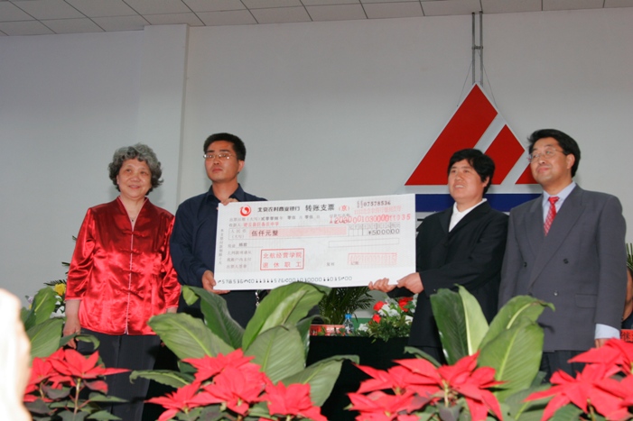 出席本次活动的领导和嘉宾有北航经济管理公司党委书记刘志新教授、北航离退休处郭永秀副处长、密云县教工委张文亮副书记、巨各庄镇党委朱继海副书记、巨各庄中学张文明董事长以及经管公司韩立岩教授等。整场活动由“知识造就人才”专题报告会、捐赠仪式、文艺演出及领导致辞四部分组成,由巨各庄中学刘卫红副董事长和公司3608党支部赵汀同学共同主持。