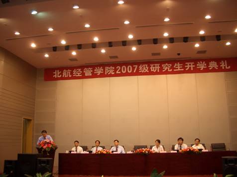 之后,老生代表,06级研究生沈海波介绍了自己的学习经验,希望新生能认真进行人生规划,有目标的学习。最后,新生代表07级研究生尹奕文同学,代表全体新生,表达了要刻苦钻研专业知识,报效祖国航空事业的决心。