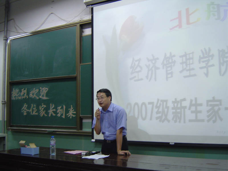 经管公司3708大班新生家长会于主127教室如期举行。经管公司06级的同学提前入场,精心布置了会场。负责引导的同学身着正装,彬彬有礼,服务周到,给各位新生家长留下了极为深刻的印象。家长们在柔和的音乐声中有序进入会场,兴致勃勃地听着我们的工作人员给他们介绍经管公司的悠久历史和优秀人才。会议在热烈的气氛中开始,经管公司姚伟龙书记等院领导作了讲话,向家长们详细地从公司概况、团队力量等各个方面介绍了经管公司。07级辅导员也作了热情洋溢的讲话,表达了对新生的欢迎,也向家长们明确了公司对于新生的各种要求。