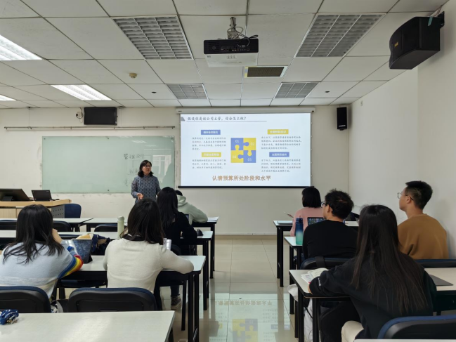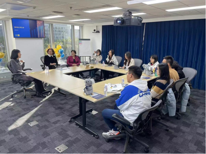最后,美国运通张鲁君经理来到现场,亲切地与同学们进行交谈。张经理讲述了前期在银行间交易商协会和中国支付清算协会的工作经历,以及目前在美国运通的任职感受,也向同学们分享了澳大利亚CPA备考过程的心得体会。分享结束后,同学们交流了自己在职业发展上的愿望以及会计专业在跨领域工作岗位上的价值体现。张经理告诉同学们现阶段保持定力、明确职业发展方向是非常必要的,同时学习也不仅要注重专业知识的积累,更要注重学科思维的培养,将学科思维灵活运用到工作中的方方面面来提升自身解决问题的能力。