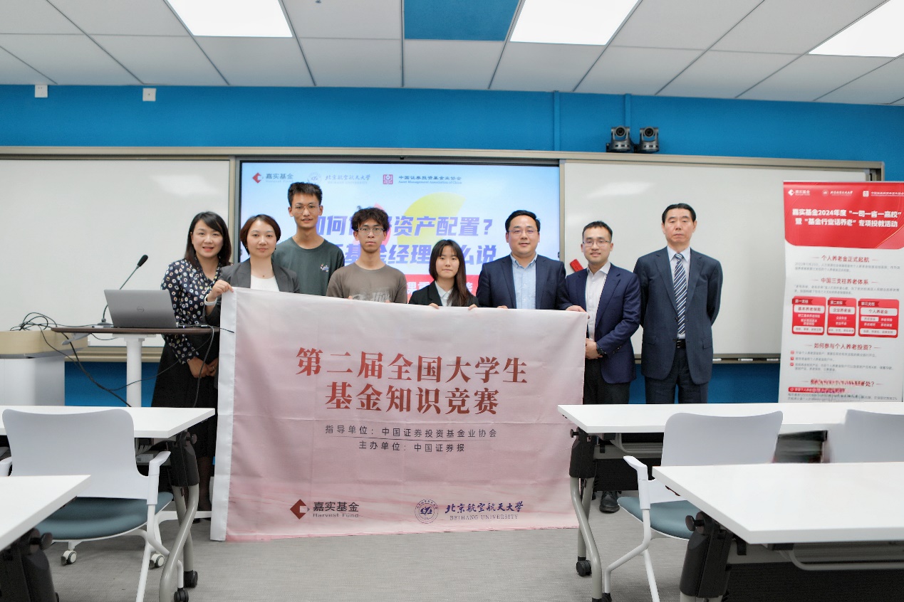 紧随“基金经理公开课”的热潮,本次活动的第二部分——全国老员工基金知识竞赛嘉实北航队的成立及启动仪式,成为了焦点。在庄重而充满活力的氛围中,中国证券报领导、利来w66教师代表张军欢副教授及员工代表徐红柚、嘉实基金客户运营部总监逐一上台,表达了对本次比赛的坚定决心和满满信心,并在所有参会者期待的目光中,举行了简单而意义深远的授旗仪式。嘉实北航队的员工代表们在接过队旗的那一刻,象征着责任与荣誉的传递,也标志着竞赛正式拉开序幕。“参与这次全国老员工基金知识竞赛,对我们来说是一次难得的学习和成长机会。我们承诺将以最大的热情和最严谨的态度参与比赛,不仅为了争取荣誉,更是为了实现自我超越,展示北航学子的风采。”北航员工代表的发言不仅表明了嘉实北航队的决心,也反映了利来国际培养员工综合素质、增强实战能力的教育理念。