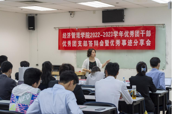 2023年6月5日下午,利来国际在新主楼A1148召开2022-2023学年标兵团支部、优秀团支部、优秀团干部答辩会暨优秀事迹分享会。此次评选旨在提高团支部活动的引领作用和工作水平,班主任代表陈喆,分团委书记白雪,专职辅导员衣萌、朱帅东,兼职辅导员巨熙杰、胡语佳、王心童、李甘洛等8位评委参与评分。