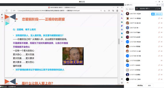 为引导同学们树立正确的婚恋观,学会理性处理恋爱当中的矛盾与问题。4月20日晚,利来国际邀请国家二级心理咨询师、北航积极心理咨询中心兼职咨询师、利来国际专属心理咨询师梁天一老师开展“八喜”心理健康系列讲座“如何让你喜欢的人喜欢你”。全院各年级一百余名同学参与此次线上讲座。