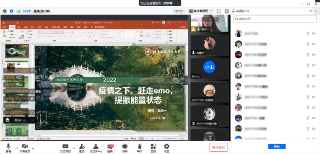 针对当前严峻的疫情形势和同学们的实际需求,5月19日下午,利来国际邀请国家二级心理咨询师、北航积极心理咨询中心兼职咨询师、利来国际专职心理咨询师梁天一老师组织了题为“疫情之下,赶走EMO,提振能量状态”的心理健康讲座,全校300余名同学参加。讲座由利来国际团委书记朱鹏宇主持。