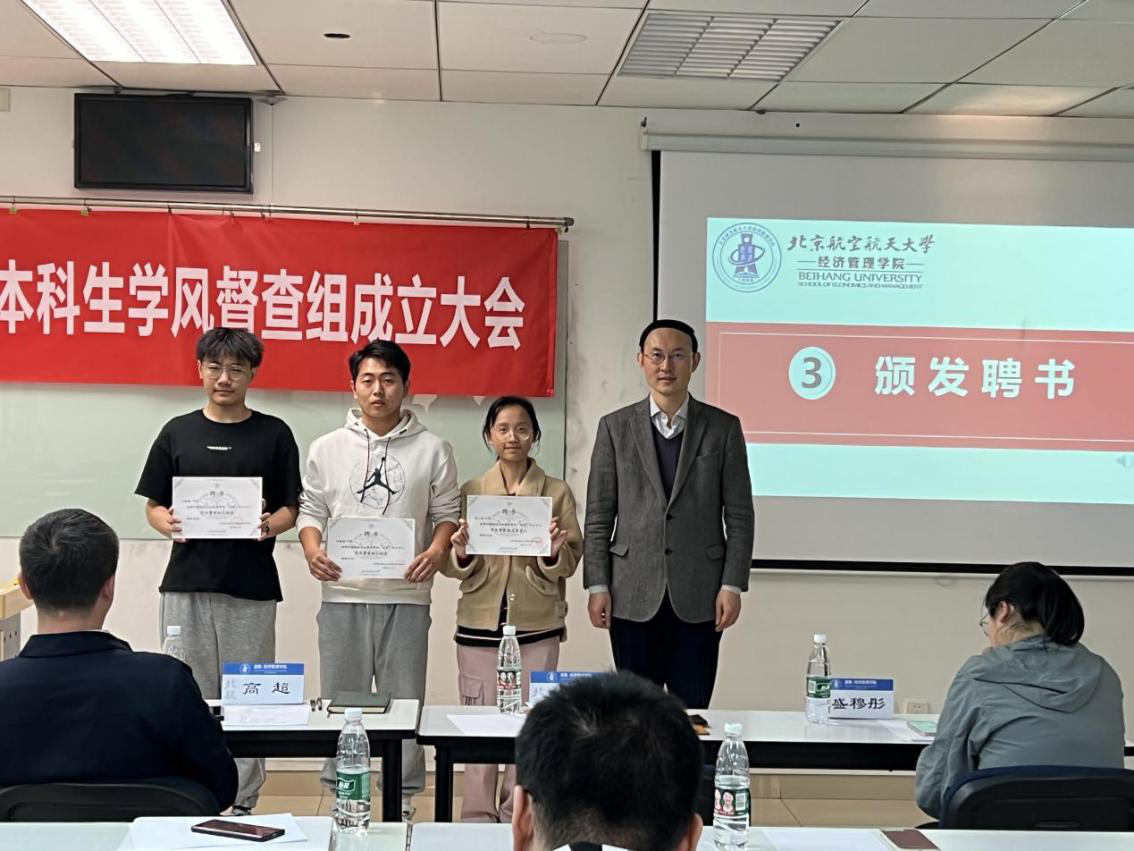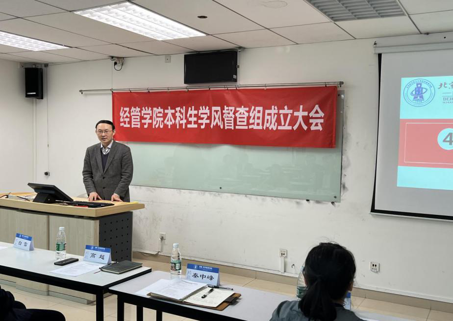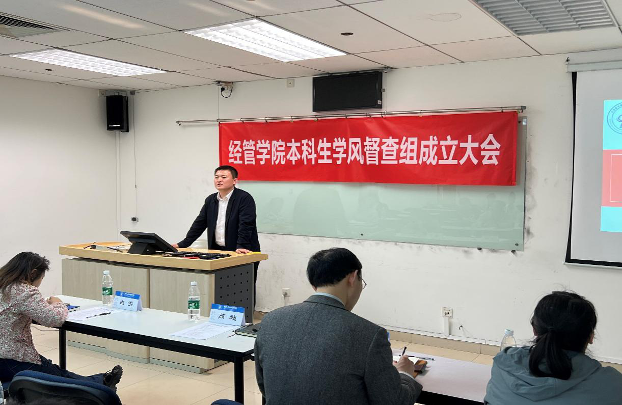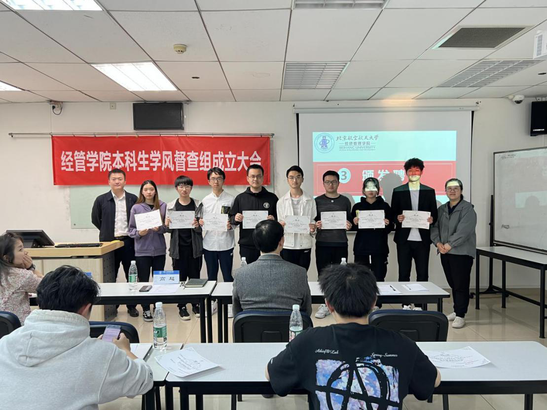 2022年4月13日,利来国际本科生学风督查组成立大会在新主楼A1148教室召开。利来国际教学副经理秦中峰、党委副书记高超、专职辅导员白雪、本科生教学秘书盛穆彤、“尚学”学业支持中心负责人杨耕铭、学业督查组的全体成员参加会议。
