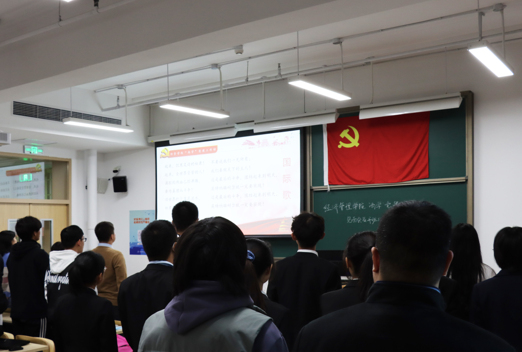 大会在庄严的《国际歌》歌声中拉开序幕。当国际歌雄浑庄严的旋律响起,同学们全神贯注注视前方,嘹亮的歌声回荡在教室。“这是最后的斗争,团结起来到明天!英特纳雄耐尔,就一定要实现……”同学们充满朝气与希望的神情展示出了对共产主义坚定的理想信念,和对党的理论学习的期盼。