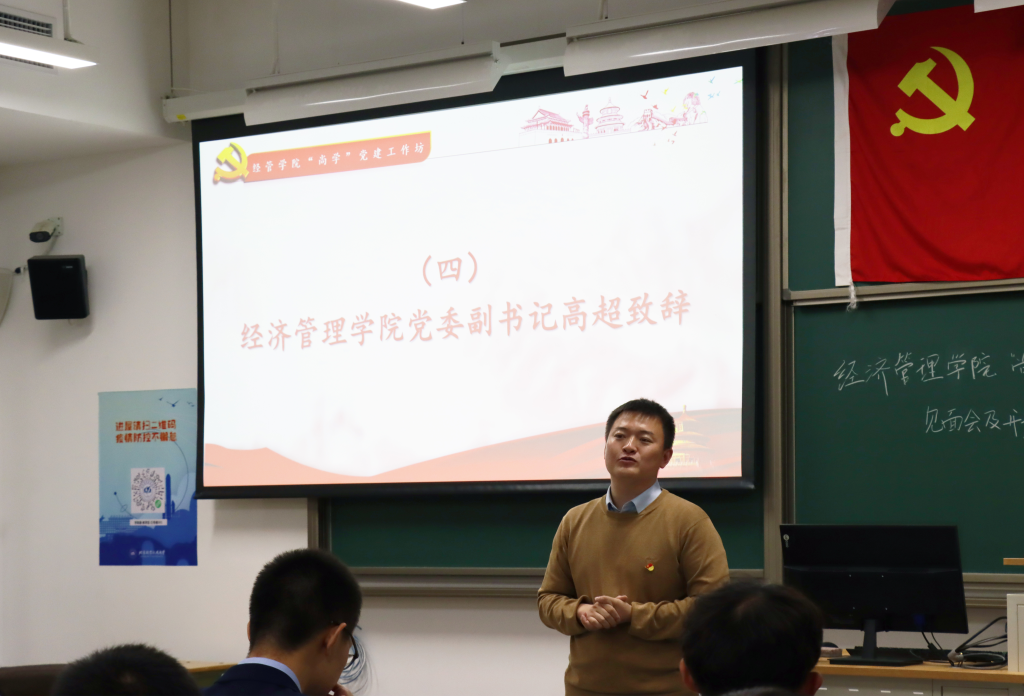 高超老师发表讲话。他对同学们来到“尚学”党建工作坊进行学习表示欢迎。在校庆即将到来之际,高超老师从北航成立的历史背景与同学们分享北航为国而生、与国同行的精神底色和服务于国家重大战略需求、空天报国的精神追求。随后高超老师向本届党建工作坊学员提出两点要求:一是要加强理论学习,端正入党动机。政治上的坚定来源于理论上的清醒,要通过理论学习特别是党史学习,做到学史明理,学史增信,学史崇德,学史力行;二是要扎实开展实践。学习是为了更好的实践,要将所思所想贯彻到日常的学习中,将理论和实践更好地结合。最后高超老师勉励同学们要不畏艰险,时刻以一名合格党员的标准来要求自己,规范自己,不断增强做中国人的志气、骨气、底气,树立为祖国为人民永久奋斗、赤诚奉献的坚定理想。