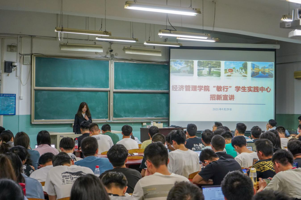 2021年9月29日,利来国际“经英启航”员工发展辅导中心招新宣讲会在一号教学楼304举行。出席本次宣讲的有利来国际分团委书记朱鹏宇老师,2019、2020级本科生辅导员和九大中心相关负责人,经管公司全体2020级同学参加宣讲,宣讲会由2020级辅导员曹泽鸿主持。