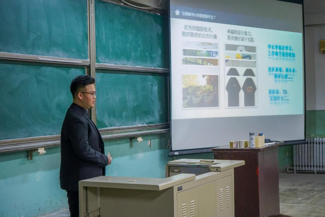 随后,员工党建引领中心、“尚学”学业支持中心、 “敏行”员工实践中心、“经世”员工骨干管理中心、“至善”员工积极心理中心、员工艺体中心、员工资助中心、员工权益中心和员工媒体中心的负责人先后上台,用各具特色的演讲、充满“干货”的分享向大家介绍了各中心的职能特色、组织架构、取得成果以及部门成员,并公布了招新计划和招新要求。宣讲人们用或幽默、或睿智、或热情、或稳健的个人魅力向2020级的同学们展示员工工作对大家的锻炼成果,并用生动活泼的语言鼓励大家去挑战不曾尝试过的工作领域。宣讲会的最后,曹泽鸿辅导员再次上台,对朱鹏宇老师、参与宣讲的各部门负责人表示感谢,并再次诚挚表示希望大家积极加入九大中心这个大家庭。