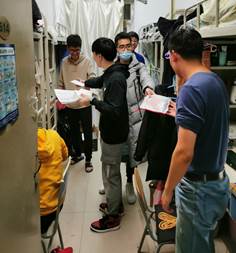 2017级兼职辅导员田莉娟、郭梁于晚上十点到员工宿舍亲手为员工分发“暖心礼包”,送上鼓励与祝福,并提醒大家合理安排作息时间,保持良好心态。