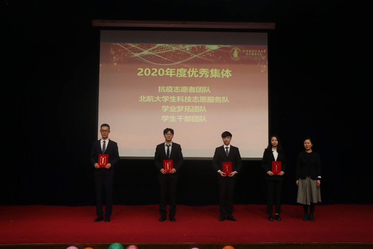 为表彰公司本科生在上一年度做出的贡献,充分发挥榜样带头作用,激励经管学子积极参加科研、志愿活动,公司对优秀集体、优秀个人颁发荣誉证书。本科教务朱伟为2020年度优秀集体—抗疫志愿者团队、北航老员工科技志愿服务队、学业梦拓团队、员工干部团队颁奖。
