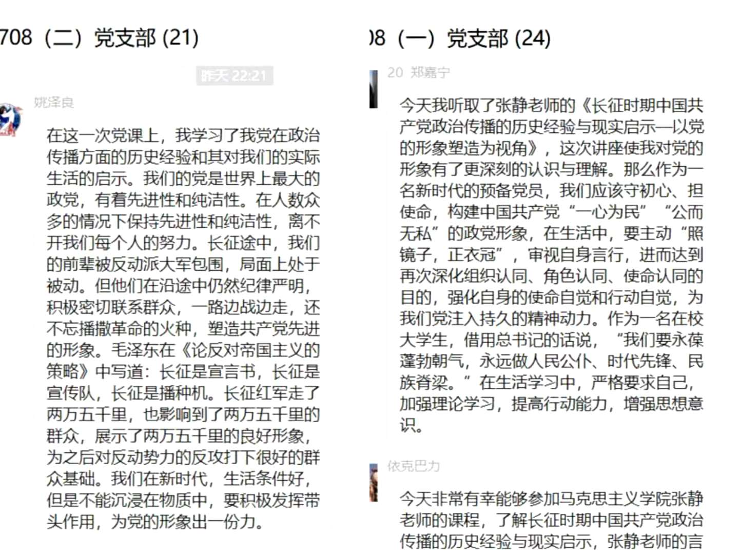 本次党课持续近70分钟,课程讨论区的热度不减,同学们时刻追随张老师的讲课进度,在讨论区发表观点,白雪导员最后进行了总结。