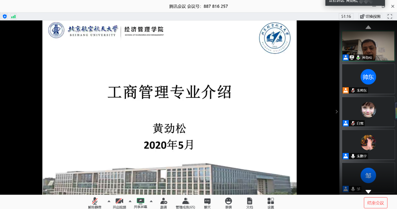 工商管理专业的黄劲松老师先为同学们介绍了工商管理专业的战略管理,营销管理,人力资源管理等几个主要的研究方向,以及同学们需要具体学习的内容和掌握的研究方法;并介绍了工商管理学科研究所强调的问题导向,而并非方法导向,开阔了同学们的视野,也让我们对整个工商管理专业有了一个更宏观的认识。随后,黄老师就团队力量,学科课程设置展开介绍,并充分展示了工商管理学科在课程设置上的优势:特色课,精品课数量多,参照国内外知名大学的培养模式,结合北航自身特点,科学地设置学科课程,以培养顺应时代发展地新型人才。