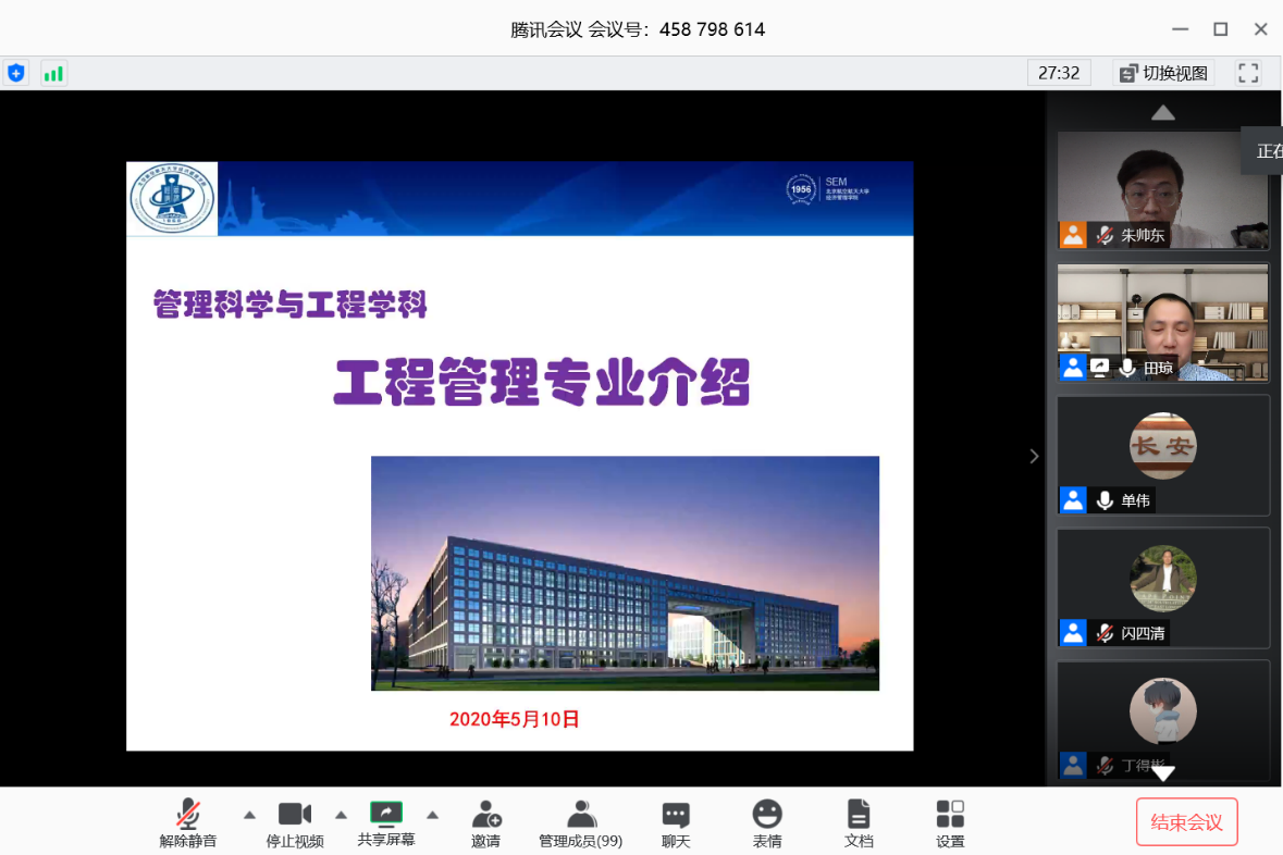 为了帮助同学们更全面、深入地认识经管公司各专业特色,结合自身兴趣特长,科学地选择和规划学习生涯及发展,经管公司邀请了各系系主任与专家教授,于校历第11周周日,第12周周三和第12周周日为2019级致真书院的同学们深入解读经管各专业,目前三期“专业面对面”宣讲通过腾讯会议平台圆满“云”完成,第一期由经济管理公司党委副书记单伟老师主持,第二期和第三期由经管公司分团委书记朱鹏宇朱导主持,工程管理、信息管理与信息系统、工业工程、能源经济、经济统计学、金融学、会计学,工商管理八个专业的系主任为同学讲解本专业相关情况。