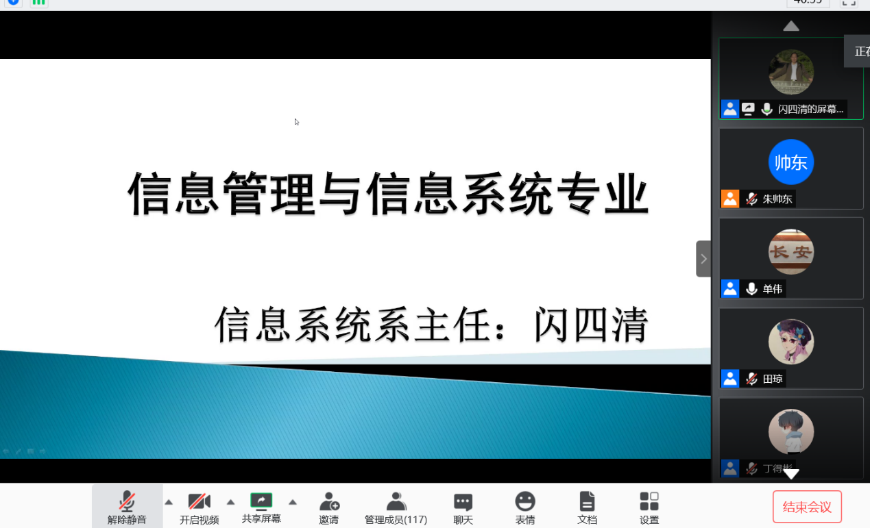 信息管理与信息系统系主任闪四清教授,首先就信息管理与信息系统专业的特点、研究重点和重要性进行了阐发,引导员工深入认识和理解,然后介绍了本专业的知识体系(经济、管理、信息技术),提出了毕业生应获得的知识与能力要求,明确了员工的学习目标。闪教授又通过管理信息系统典型产品和典型研究的举例,教师科研项目、发表论文和毕业生毕设题目的介绍,以及毕业生去向的分析,引导员工从不同层面了解专业属性与专业特点,充分展示了专业的研究内容与发展方向。闪教授指出,信息管理与信息系统专业是学科交叉热点领域,是大有作为的天地,希望更多优秀员工投身信管专业,前来学习、发展、创造。